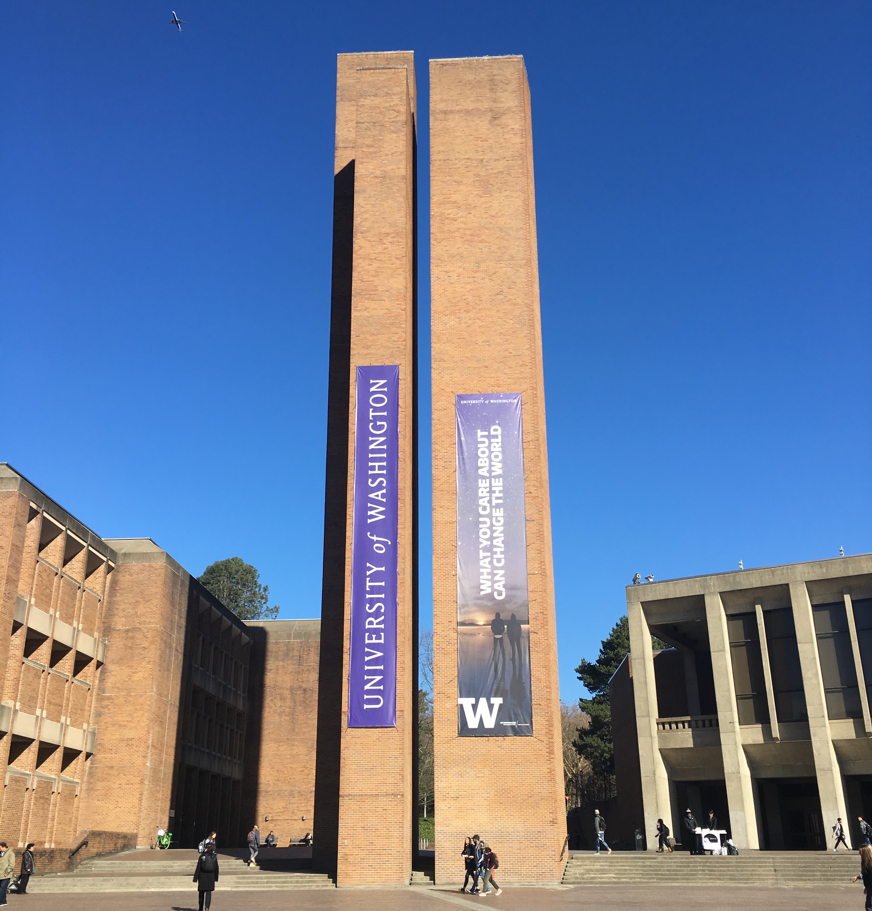 アメリカ西海岸、シアトルにあるワシントン大学に留学してました。ワシントンと聞くと東にある首都のD.C.と思いがちですが、ワシントン大学は西のワシントン州にある名門州立大学になります。イメージカラーは紫で、「W」の文字が象徴になっています。